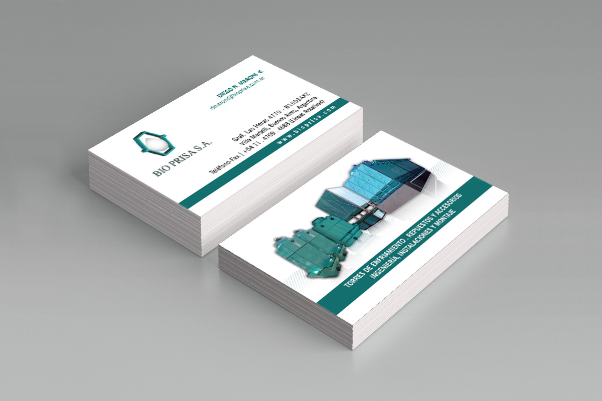 Diseño de tarjetas personales, basadas en el rediseño de la imagen de la empresa, que comenzó con el diseño de la publicidad para publicación de revista del rubro, y el armado del folleto promocional explicativo de los servicios e historia de la empresa.