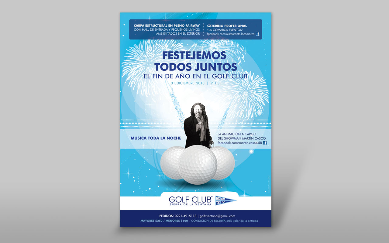Afiche para la cena de fin de año del club de golf. Preparado para imprimir, y para enviar por email como promoción del evento.